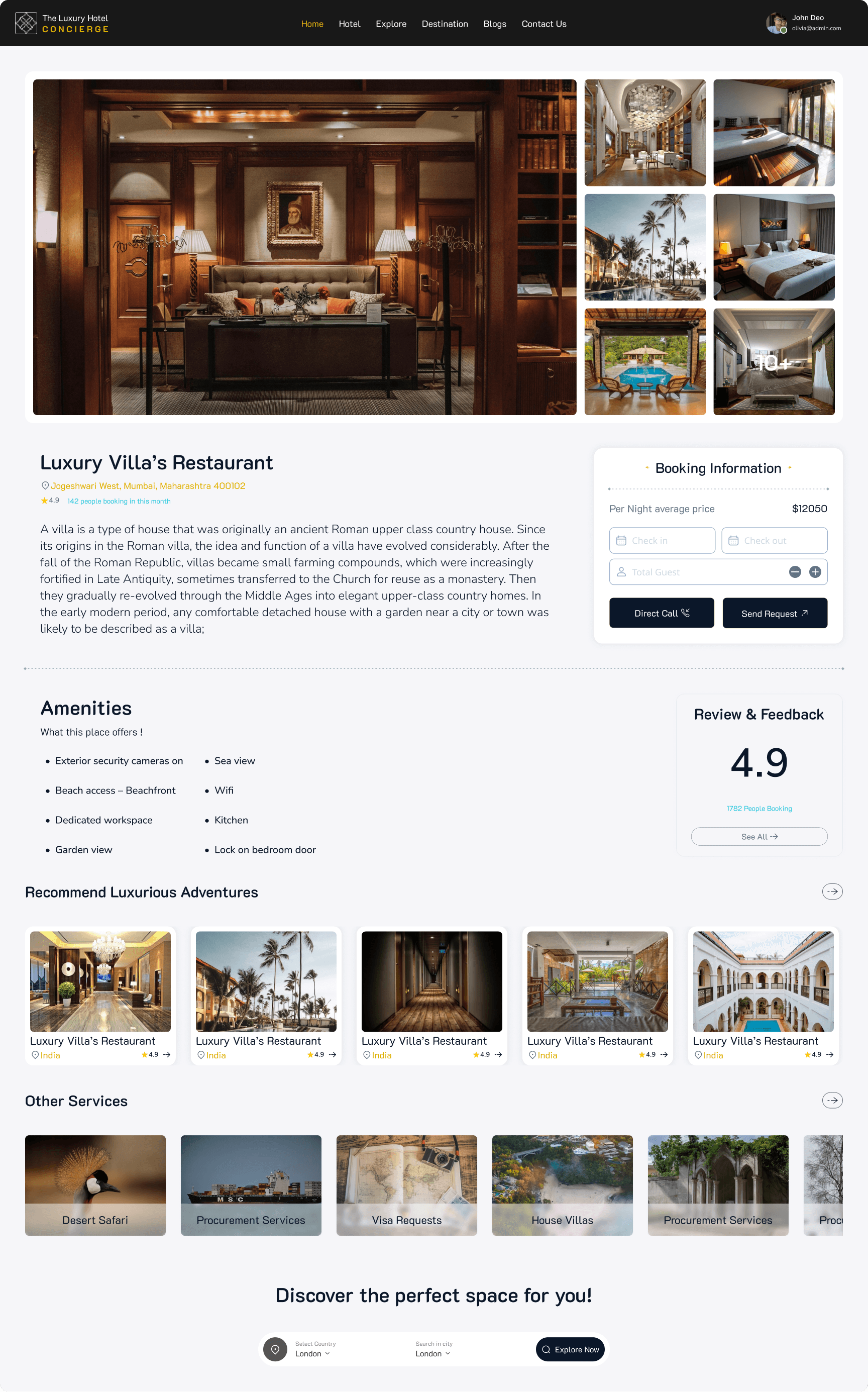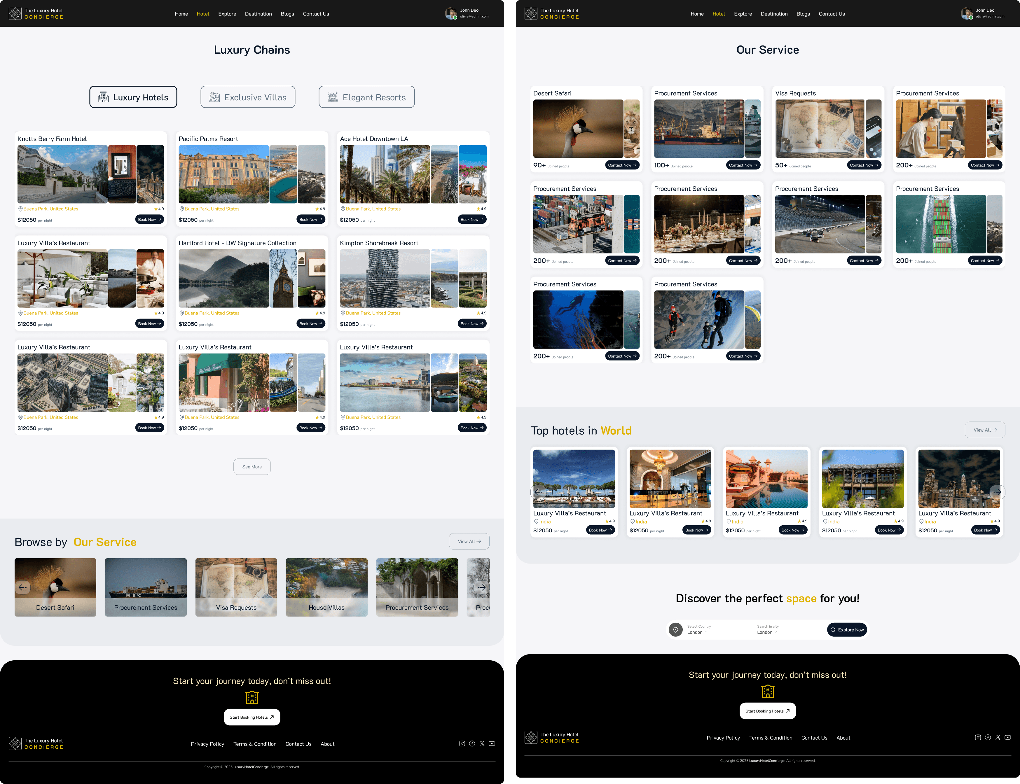 TLHC user-centric design is at the core of its functionality. The customers' needs by providing easy-to-access information and a clear path from browsing to checkout. The homepage invites users with vivid imagery and engaging text styles, while the slideshow feature lets you highlight Luxury Hotel, best-in World, or promotional events. The UI is presented with clean, readable layouts that make it easy to navigate, ensuring that customers can find what they’re looking for without hassle. It and Responsive to Any device screen Size is easy to understand Users and Book easily and Enjoy your journey.